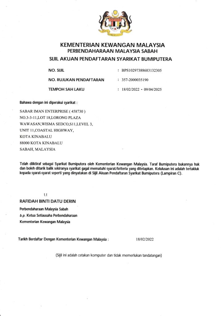 Copyright © Sabar Iman Enterprise. All Rights Reserved.